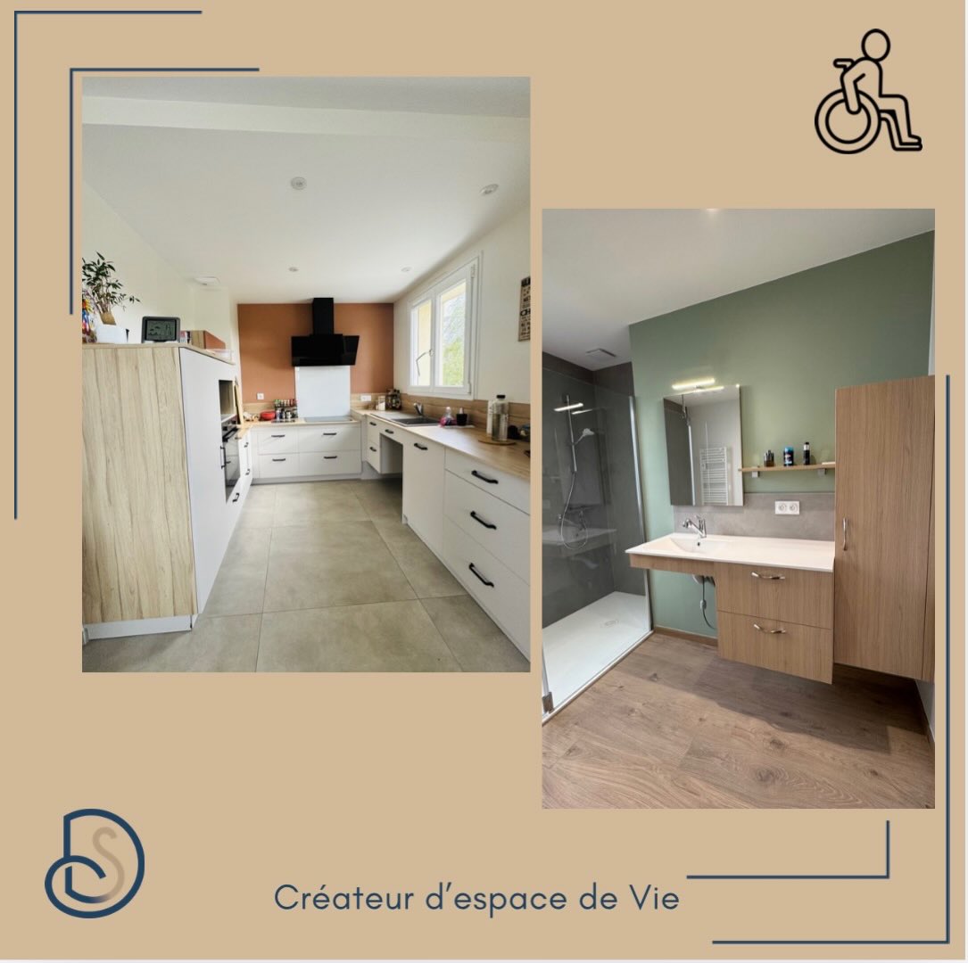 - Cuisine : plans de travail ajustables, rangements accessibles, circulation optimisée